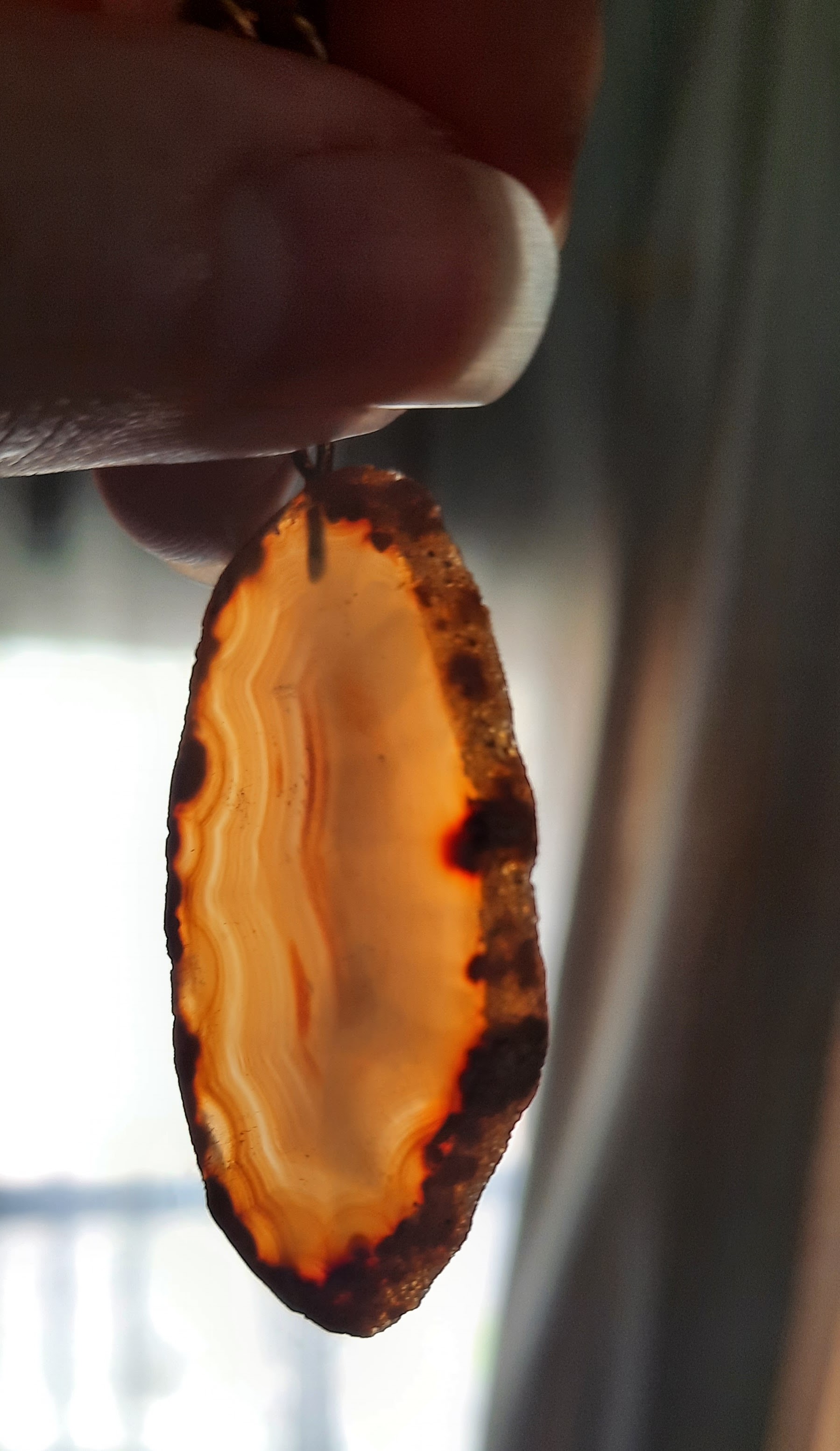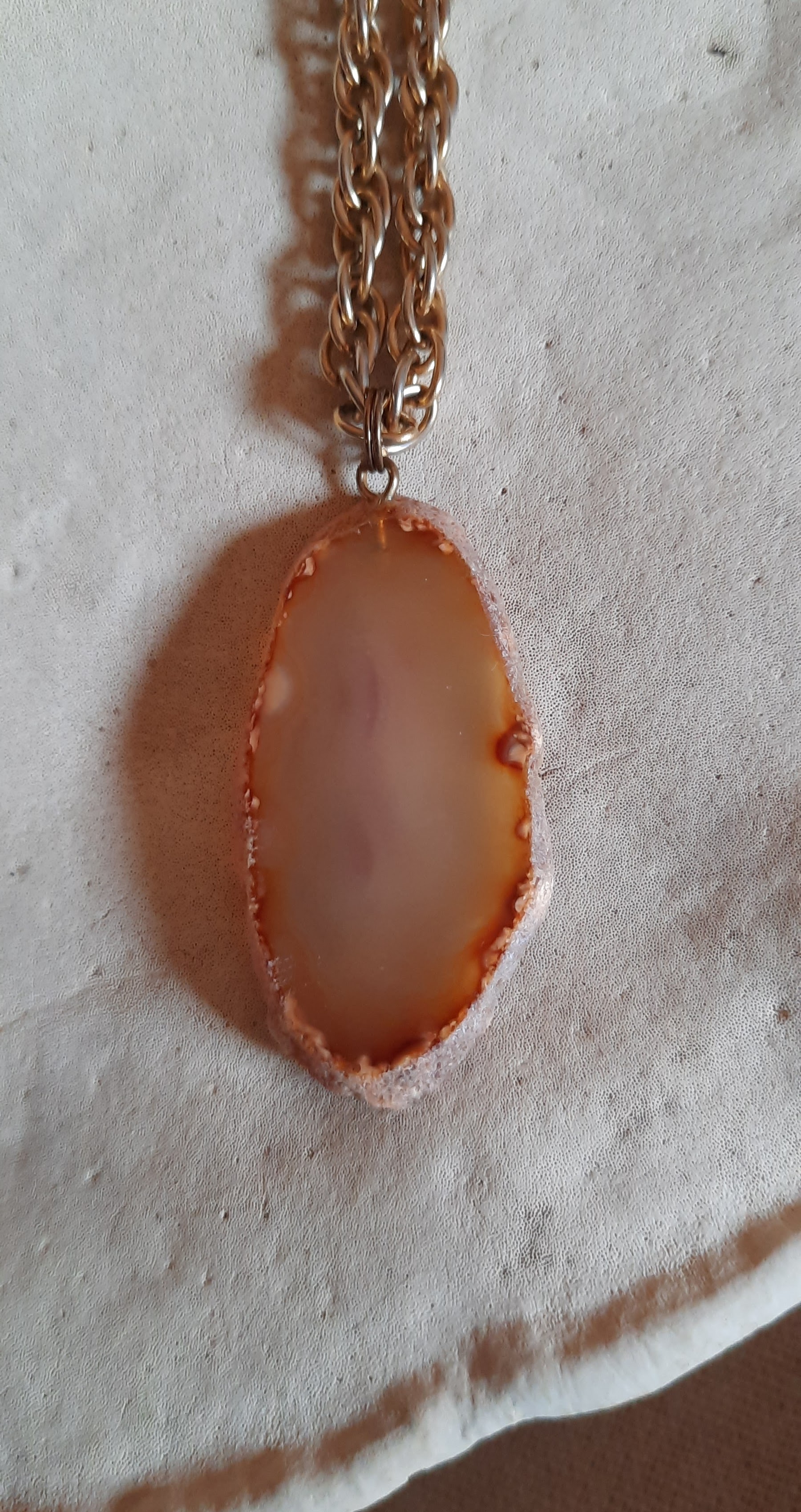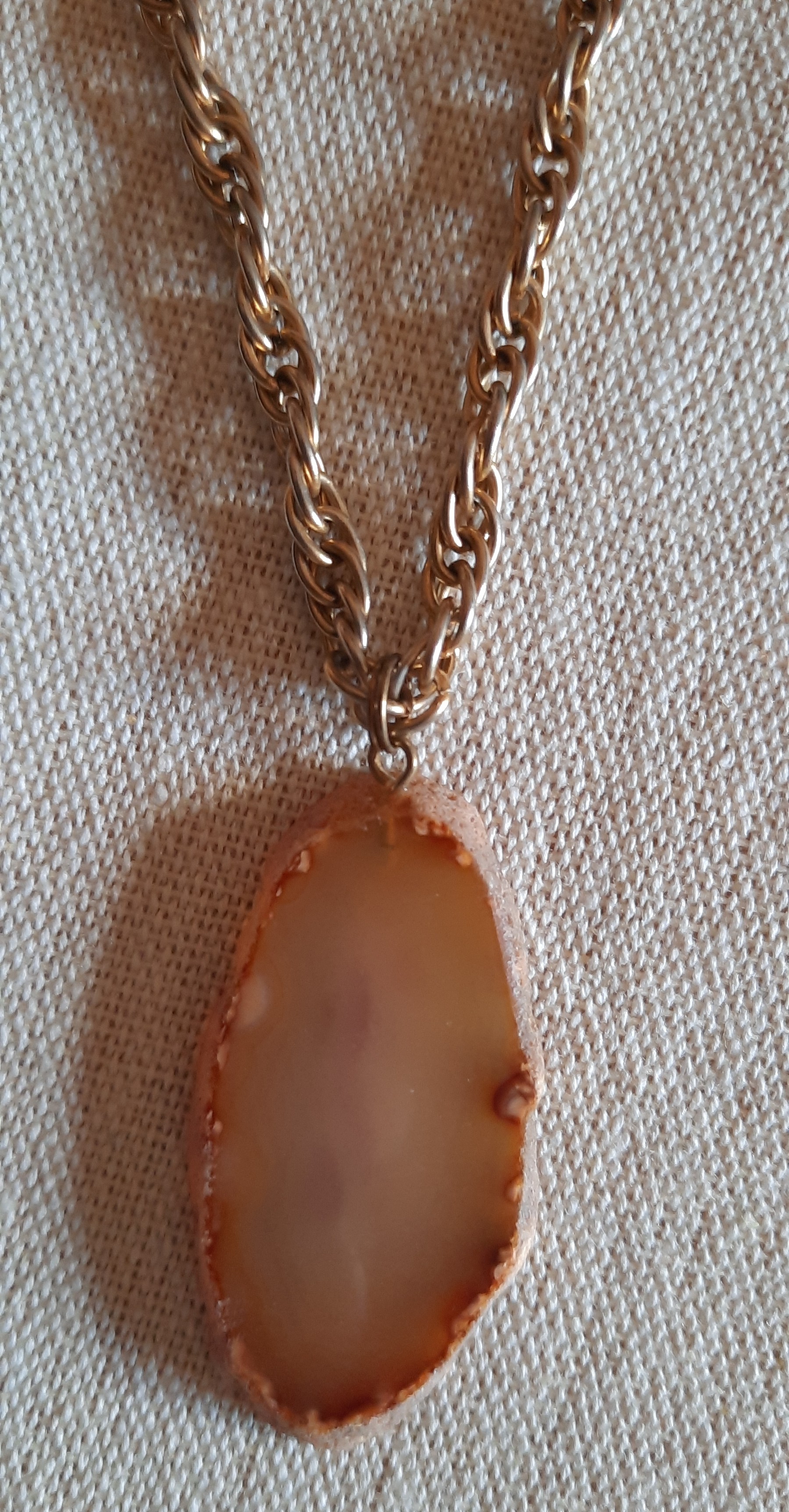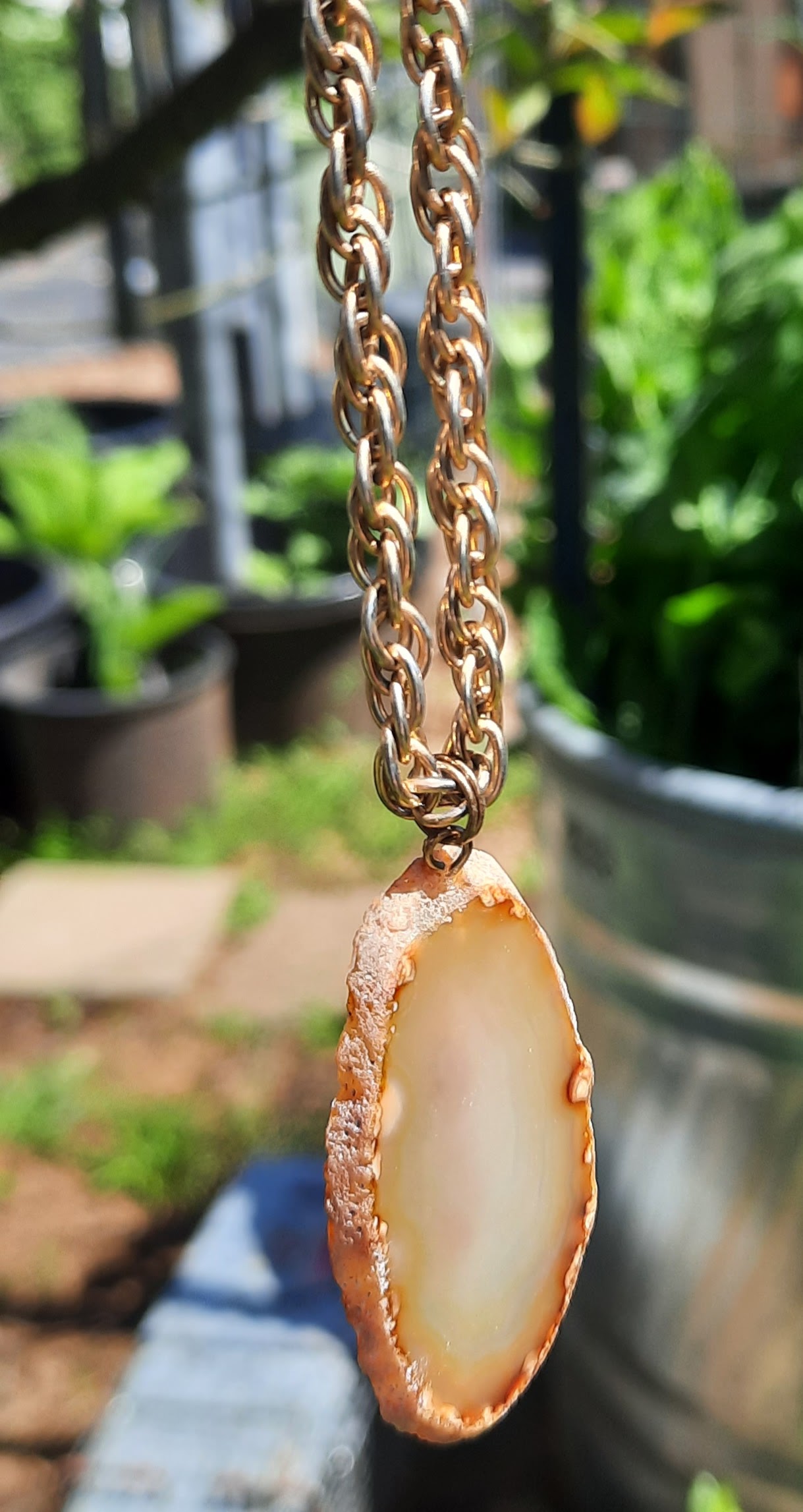 This unique earth tone agate slice necklace will go with all kinds of outfits. It's a great accessory for Fall clothing.
